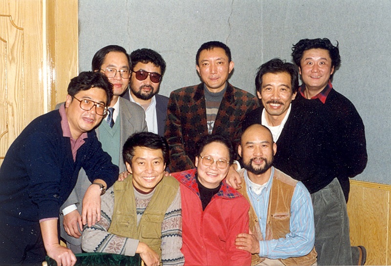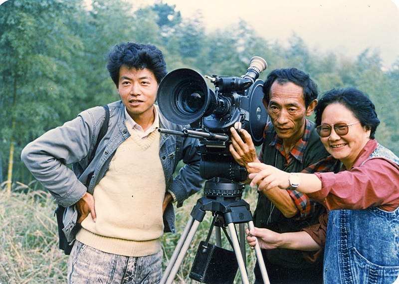 (1990年,彩色故事片《奇婚怪事》拍摄现场左起:侯克明、李廷铮、江世雄)