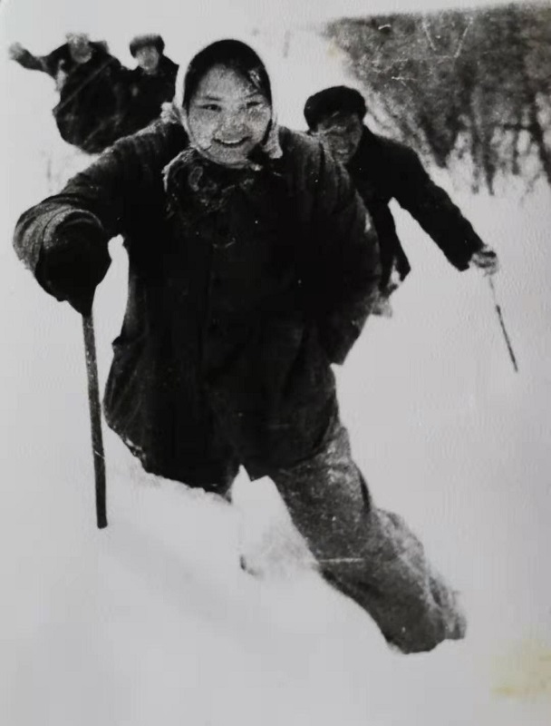 (1958年,拍摄纪录片《邮递员》时,江世雄走在大雪覆盖的邮路上)