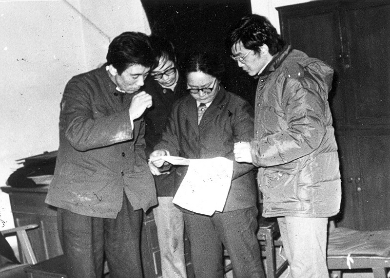 (1984年,江世雄同导83进修班学生研究拍摄方案